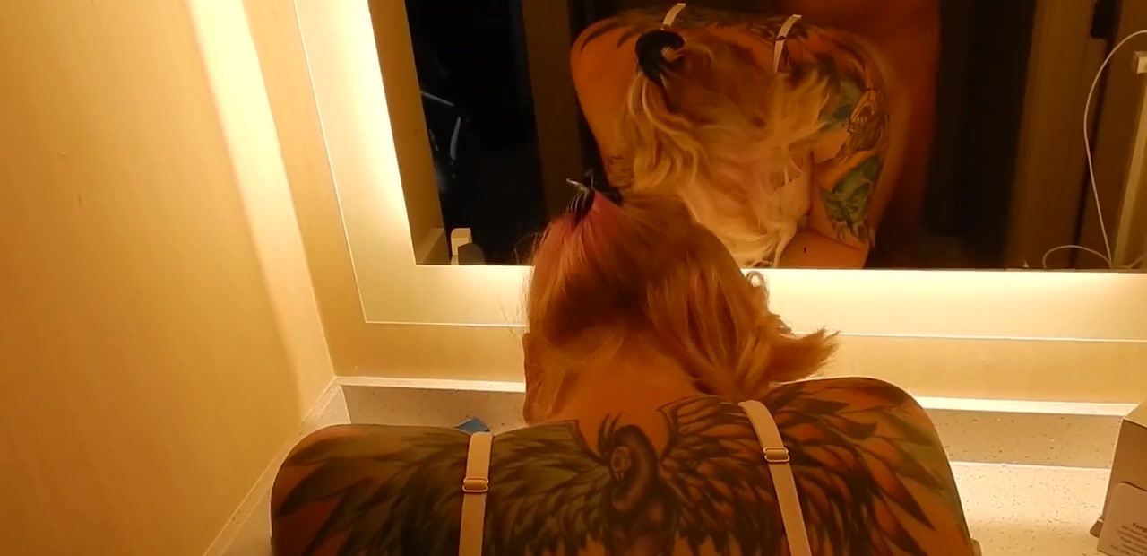 TS Nicolette Phoenix gets fucked before her scene in the bathroom