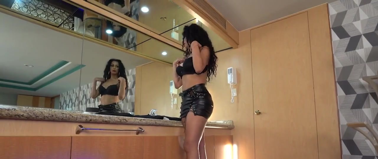 Latin booty tgirl rimmed before blowjob and jerking in duo