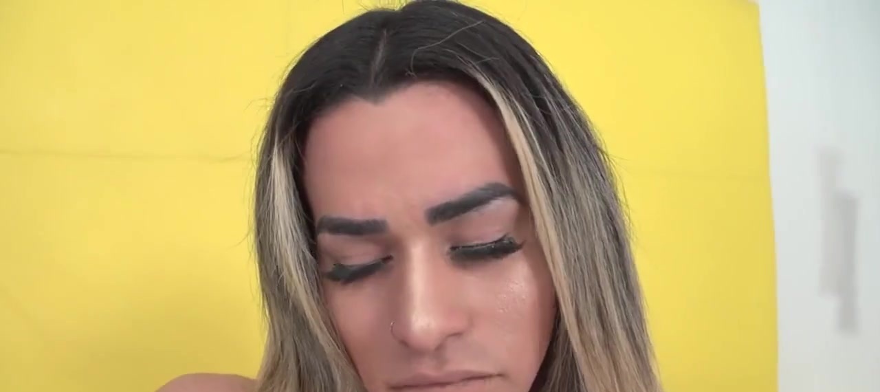 Busty tgirl amateur fingers her ass and jerks off in solo