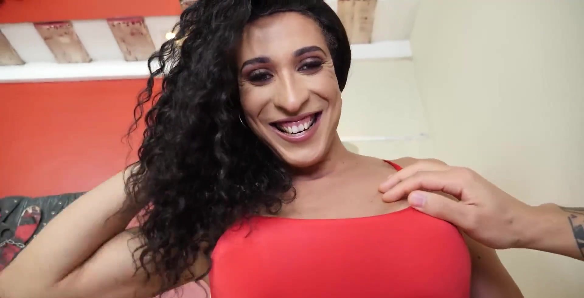 Curvy Brazilian tranny Sthefany Venturiny POV blowjob and raw ass fucking