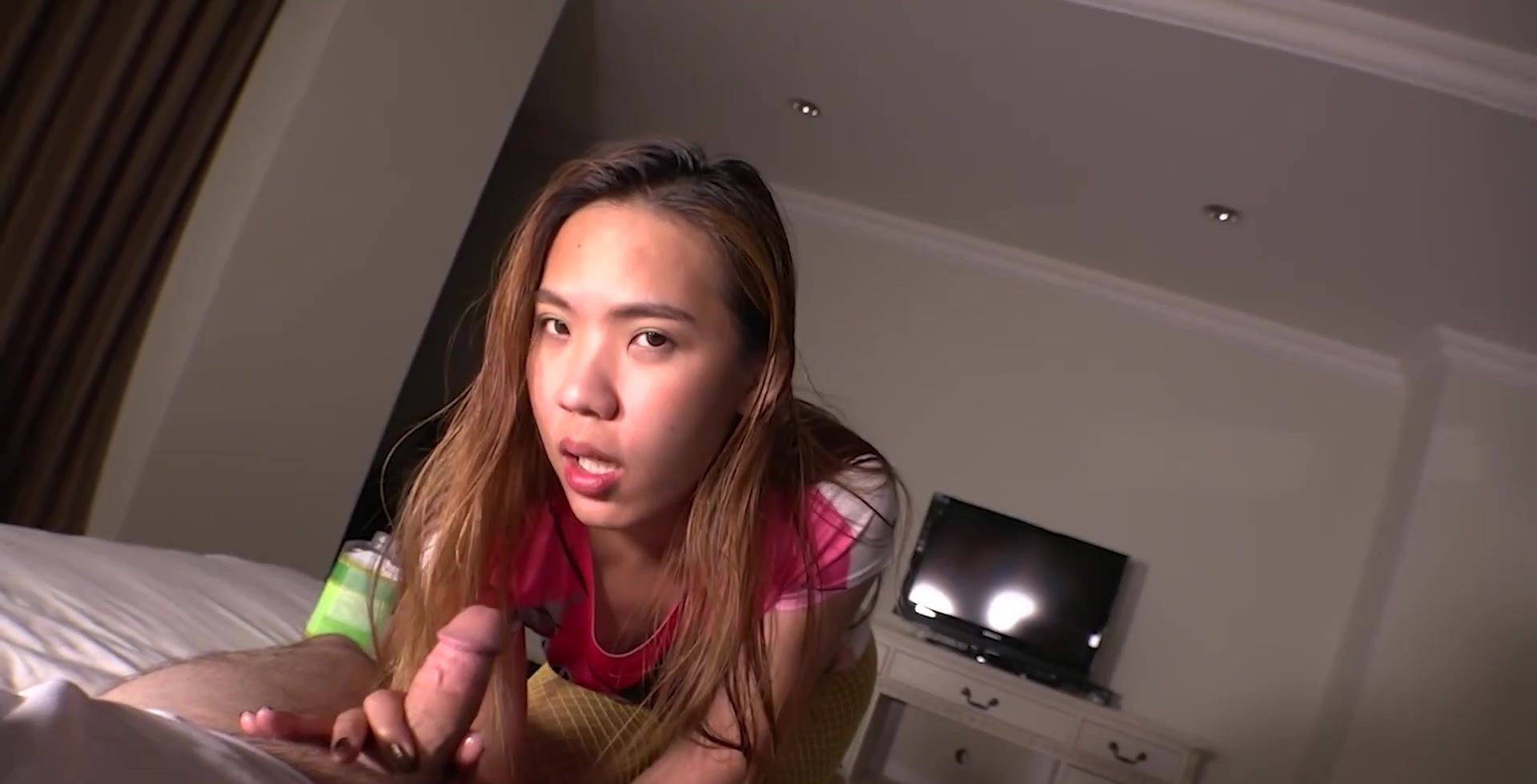 Small cock Asian amateur ladyboy teen Micky blowjob and ass fucked bareback