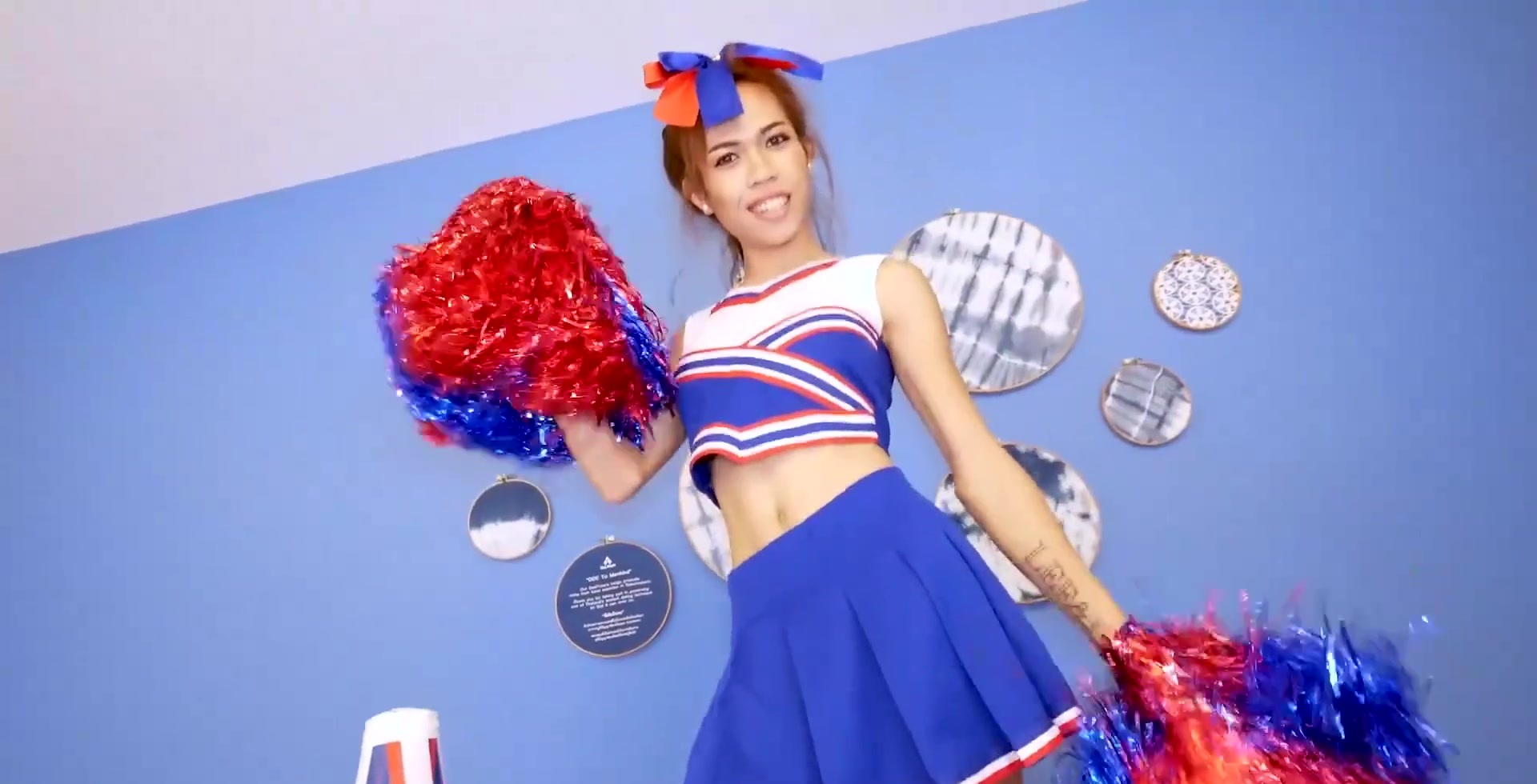 Skinny cheerleader ladyboy teen Lee POV blowjob and deep anal fucked
