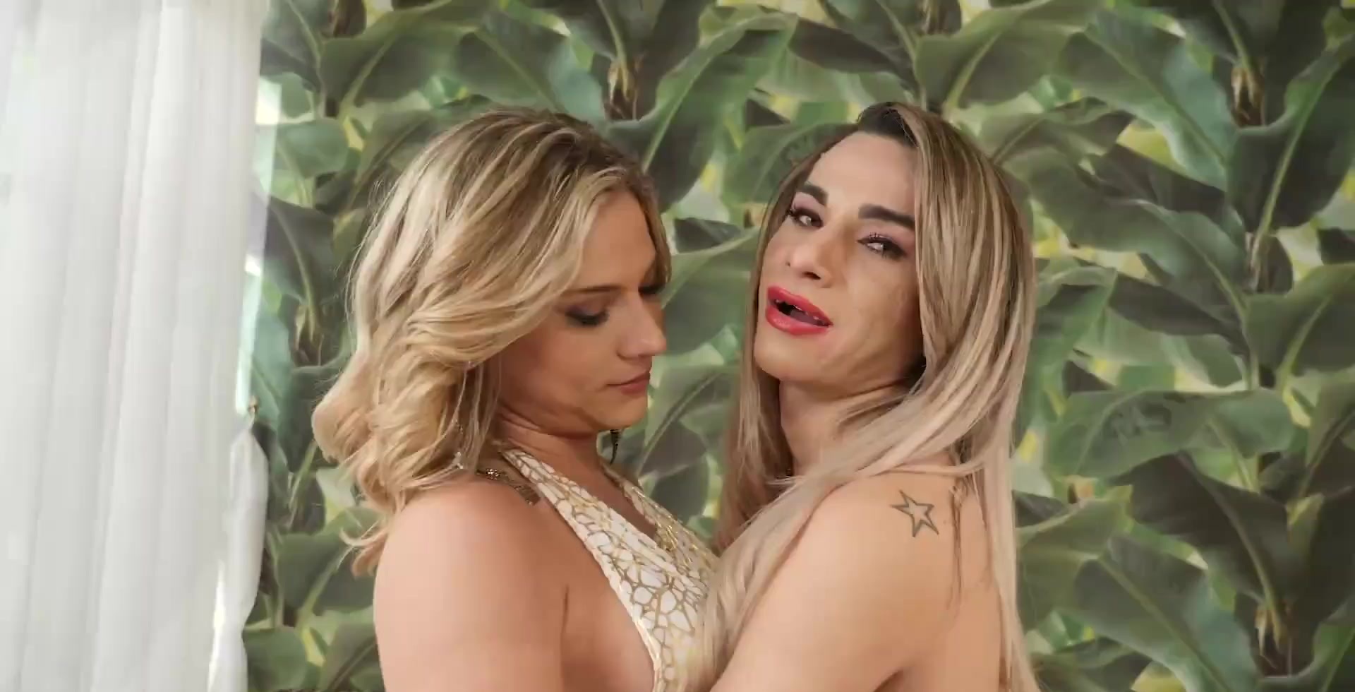 Big tits latina trannies Naty Castro and Luana Pacheco threesome with a guy
