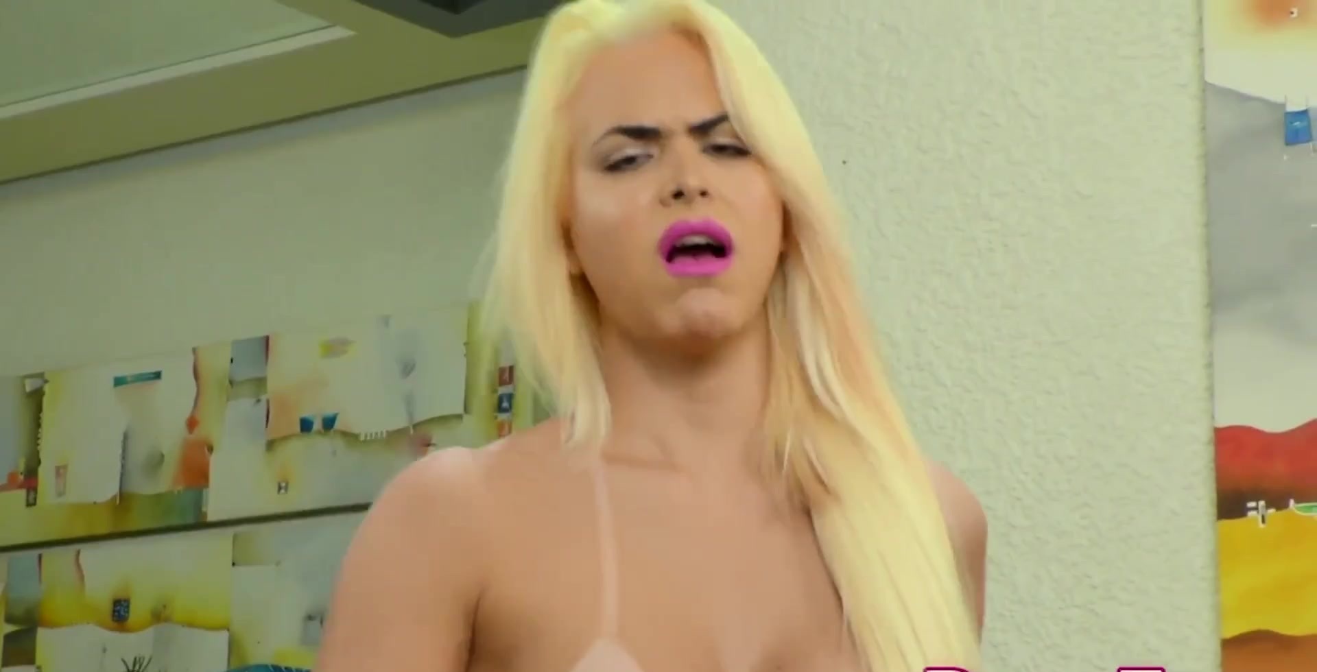 Blonde TS Barbara Perez Strokes Her Cock While Her Asshole Is Plugged