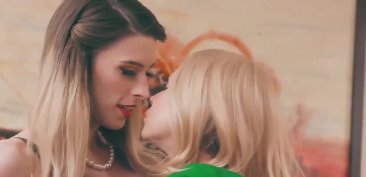 Busty shemale Casey Kisses and big tits babe Sarah Vandella exchange kisses when Caseys man left them alone.The Big tits female deepthroat blowjobs her ts cock.The tattooed and brunette trans babe fucks the blonde babe in several positions.