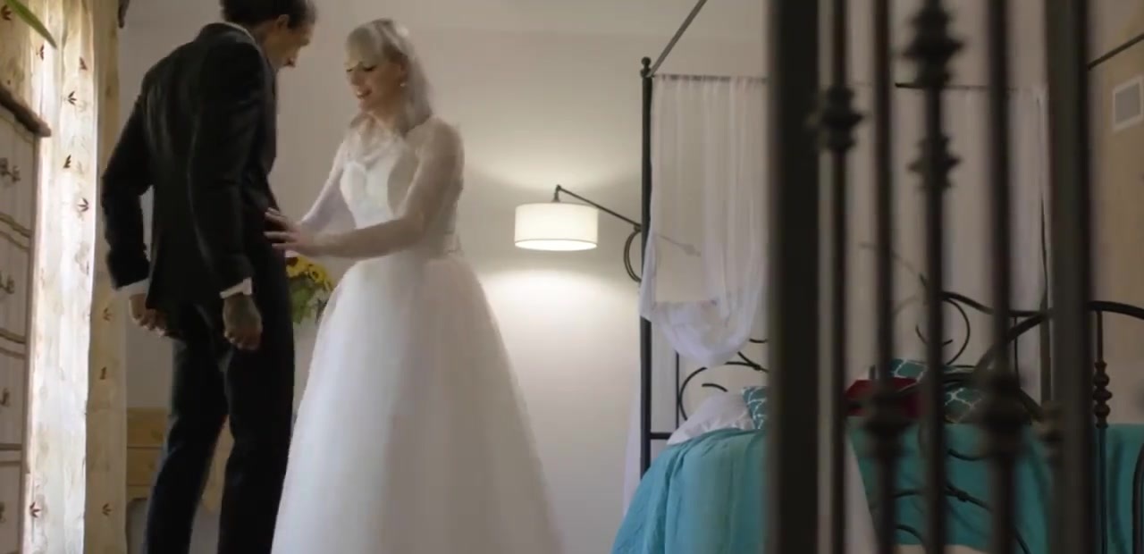 Shemale bride and her future husband are in the room kissing each other.After that,she throats his dick and lets him bareback her ass.Suddenly,the brides maid enters the room and she then joins them fucking and do threesome sex.