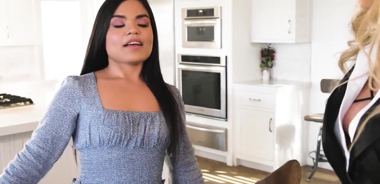 Petite latina babe flirts with trans real estate agent Gracie Jane and they kiss.The tattooed tgirl licks her hairy pussy and the small tits brunette rims the busty blonde ts and deepthroats her small tranny cock.Then the big tits shemale fucks her